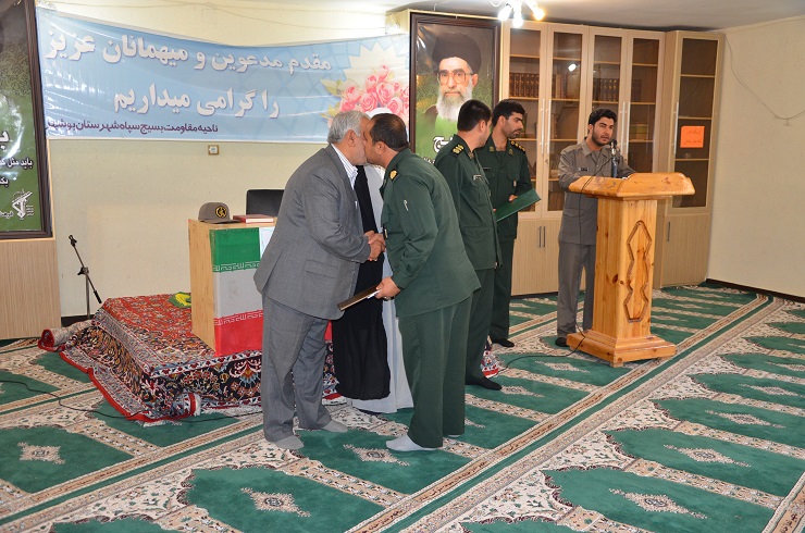 بنا به این گزارش، این جلسه در نمازخانه ناحیه مقاومت بسیج شهرستان بوشهر برگزار شد که فرمانده آن ناحیه، فرمانده سابق حوزه شهید تنگویان، فرمانده جدید این حوزه و نماینده ولی فقیه ناحیه به ایراد سخنانی پرداختند.